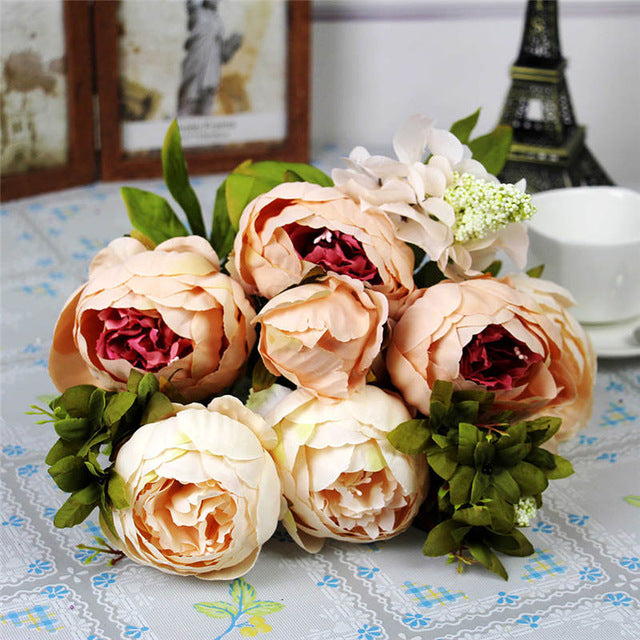 Yaran Artificial Flowers 6 Head Branch Peony Silk Simulation Flower Fake Flower Wedding Bouquets Home Decoration Table ccessory